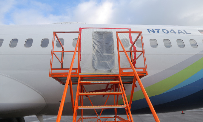 A Boeing 737 MAX 9 without a door plate. Photo by Reuters